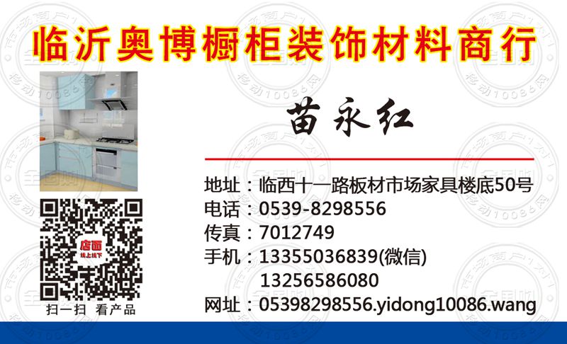 临沂奥博橱柜装饰材料商行名片-13355036839