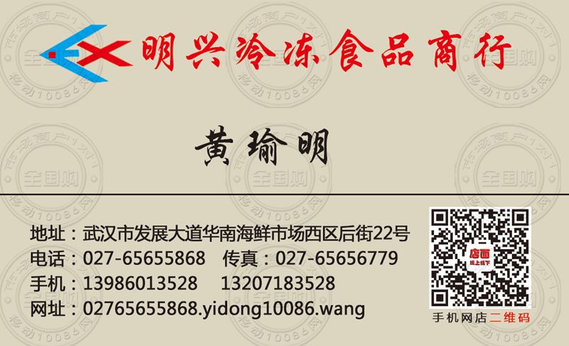 武汉明兴冷冻食品商行名片-13986013528