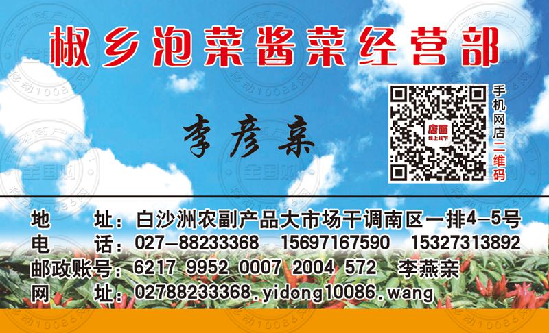 武汉椒乡泡菜酱菜经营部名片-15697167590