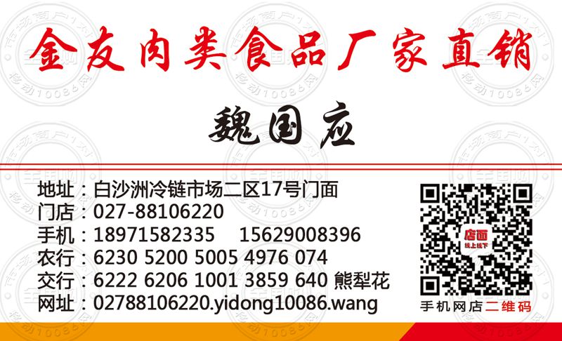 武汉金友肉类食品厂家直销名片-18971582335