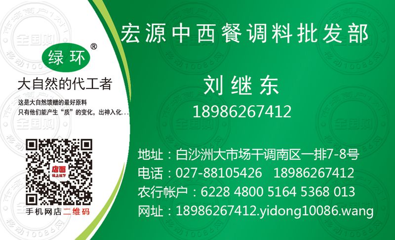 武汉宏源中西餐调料批发部名片-18986267412