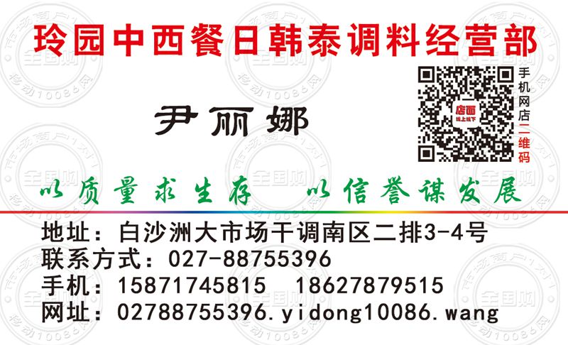 武汉玲园中西餐日韩泰调料经营部名片-15871745815