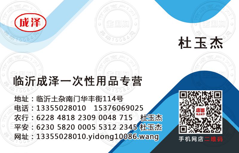 临沂成泽一次性用品专营名片-15376069025