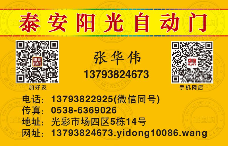 泰安阳光自动门名片-13793822925