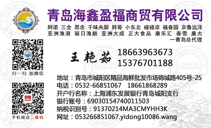 青岛海鑫盈福商贸有限公司名片-18663963673