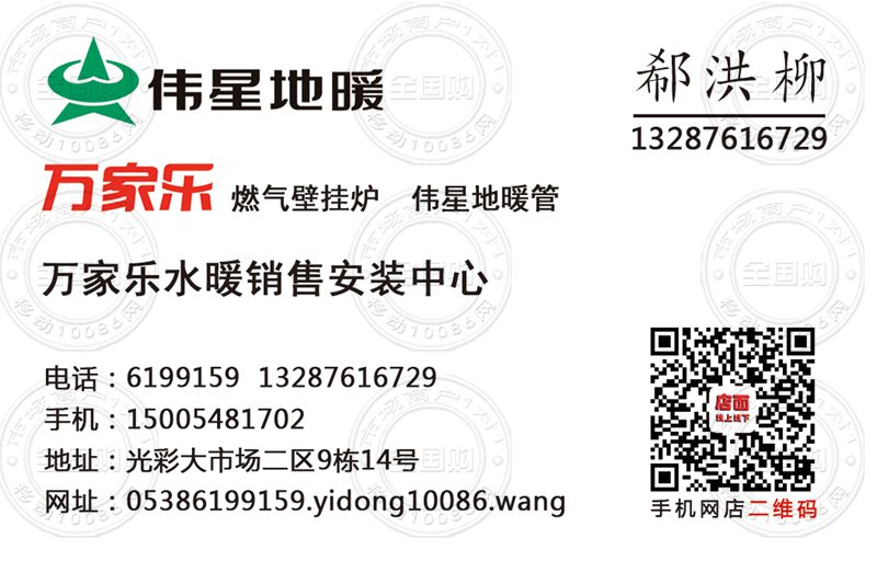 泰安万家乐水暖销售安装中心名片-13287616729