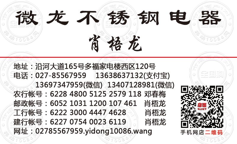 武汉微龙不锈钢电器名片-13638637132