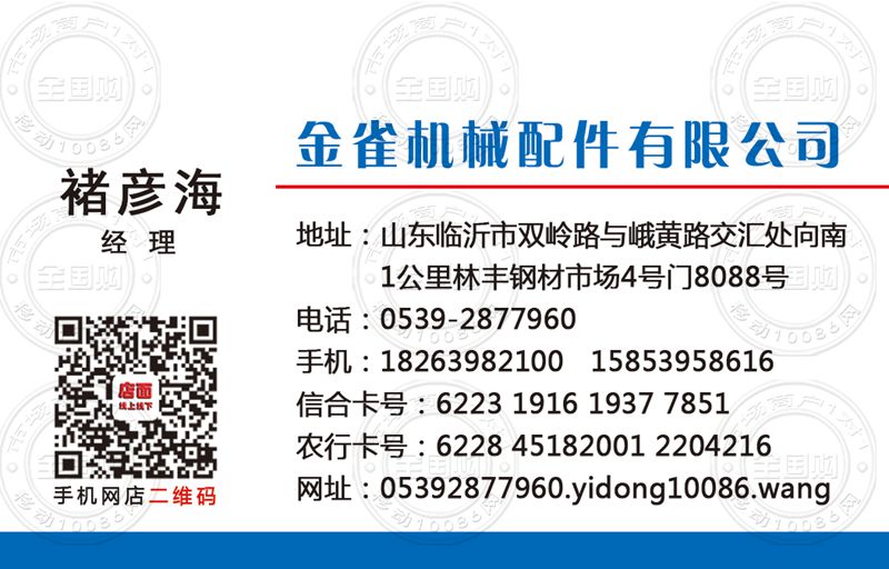 临沂金雀机械配件有限公司名片-18263982100