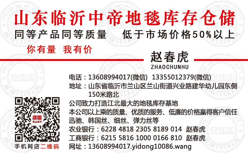 临沂中帝地毯库存仓储名片-13355012379
