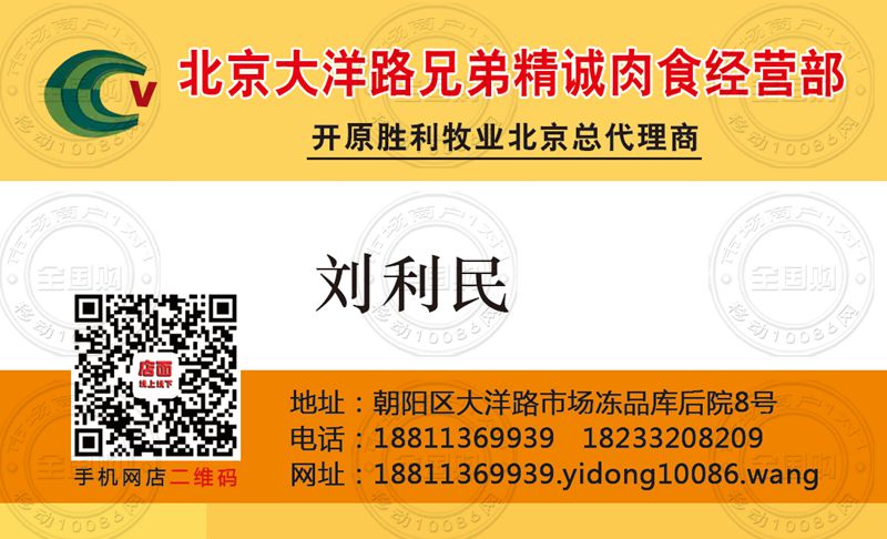 北京兄弟精诚肉食经营部名片-18233208209