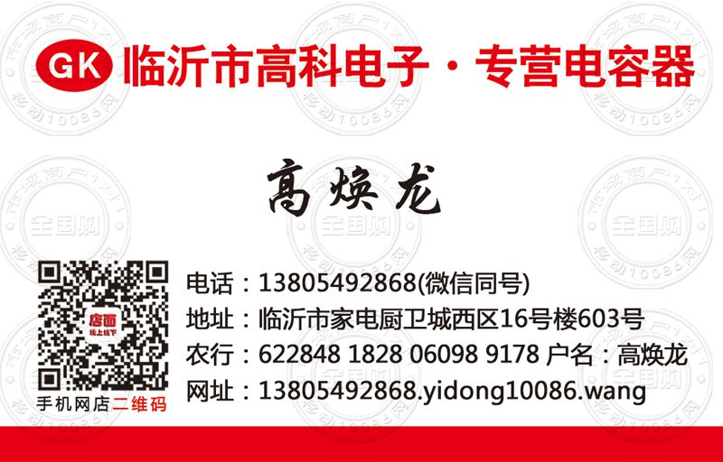 临沂市高科电子.专营电容器名片-13805492868