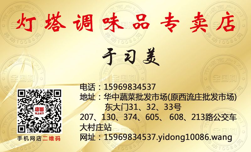 青岛灯塔调味品专卖店名片-15969834537