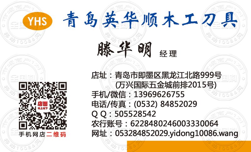 青岛英华顺木工刀具名片-13969626755