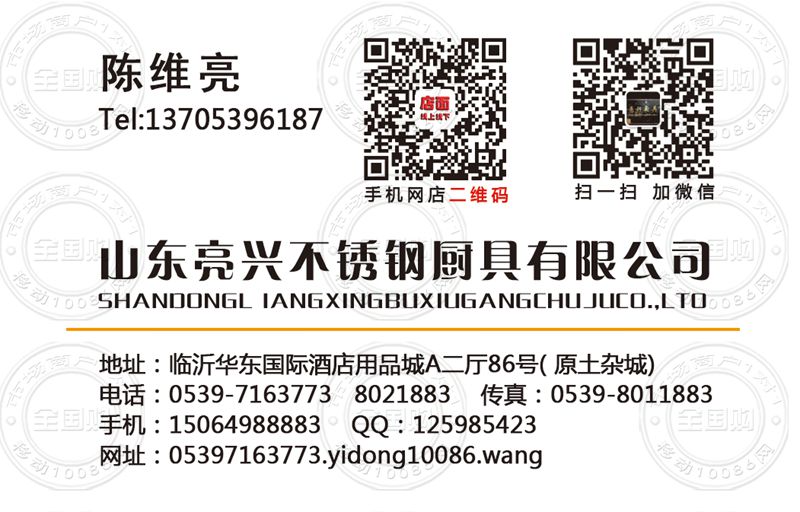 山东亮兴不锈钢厨具有限公司名片-13705396187