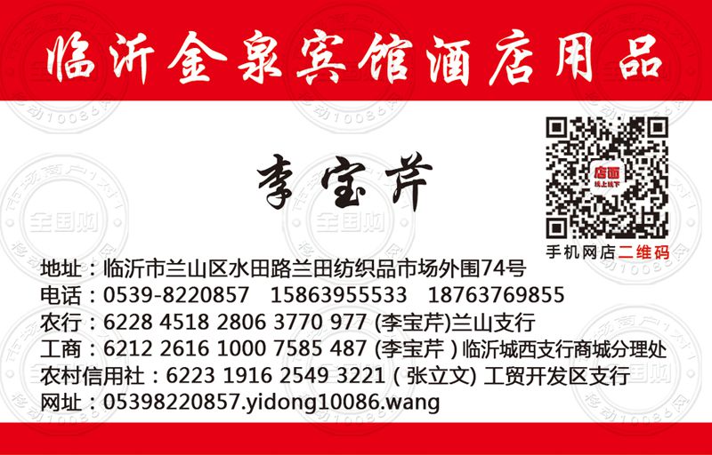 临沂金泉宾馆酒店用品名片-15863955533