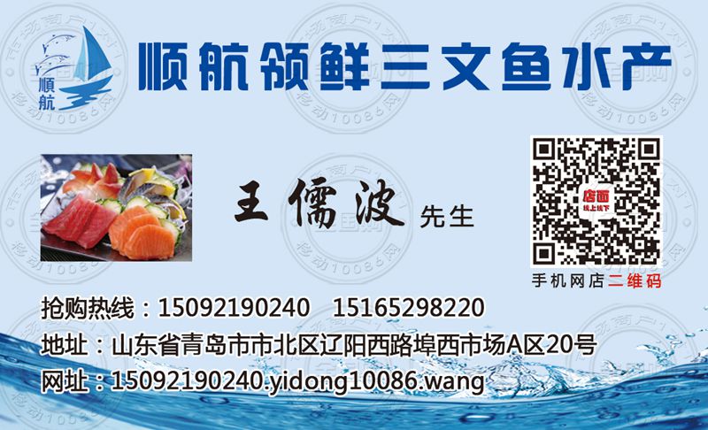 青岛顺航领鲜三文鱼水产名片-15165298220