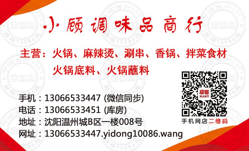 沈阳小顾调味品商行名片-13066533451