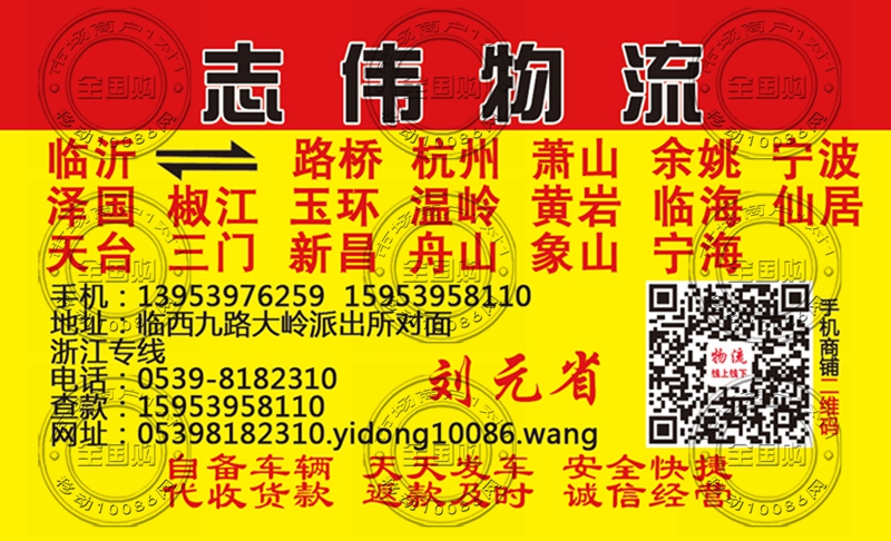 临沂志伟物流名片-13953976259