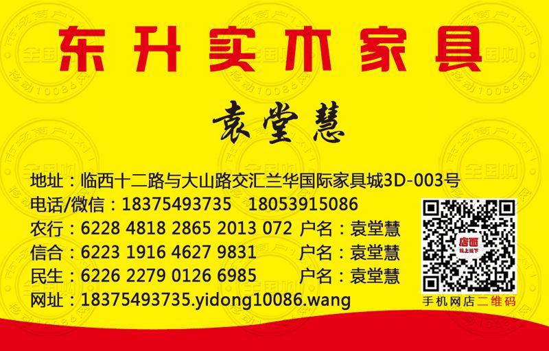 临沂东升实木家具名片-15192989806