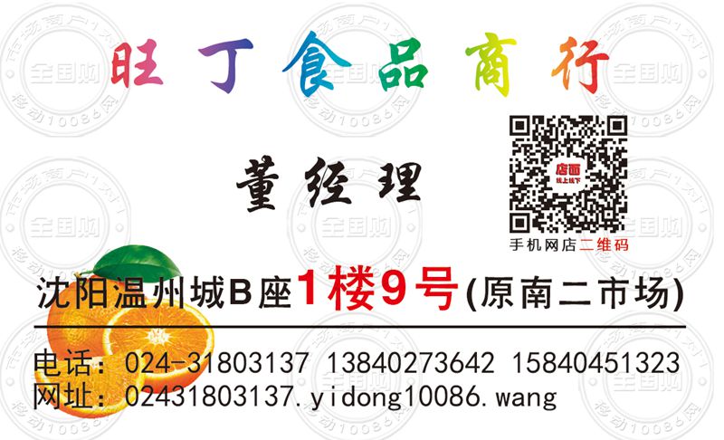 沈阳旺丁食品商行名片-13840273642