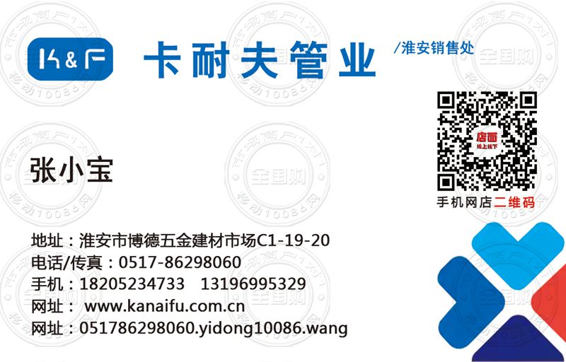 卡耐夫管业淮安销售处名片-18205234733