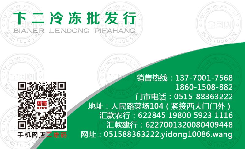 盐城卞二冷冻批发行名片-13770017568