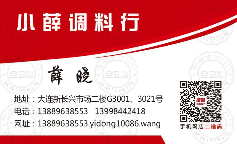大连小薛调料行名片-13998442418