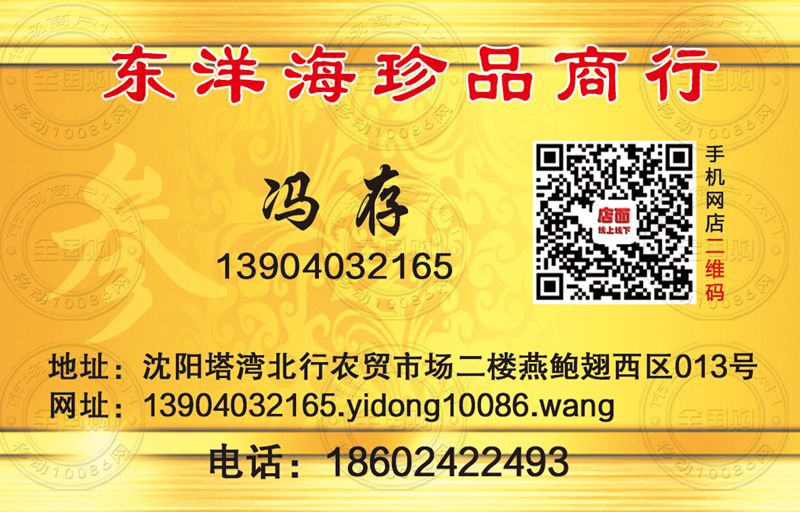 地址:沈阳塔湾北行农贸市场二楼燕鲍翅西区013号