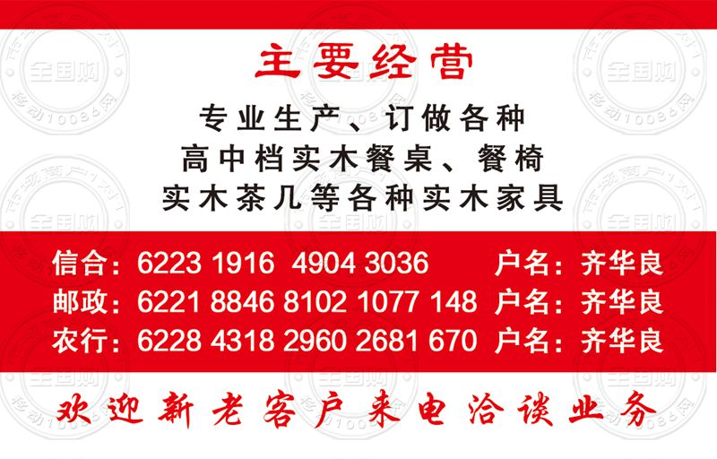 华良实木家居临沂直销处名片-15866984581