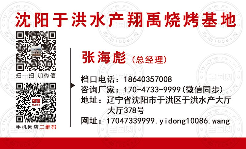 沈阳于洪水产翔禹烧烤基地名片-17047339999