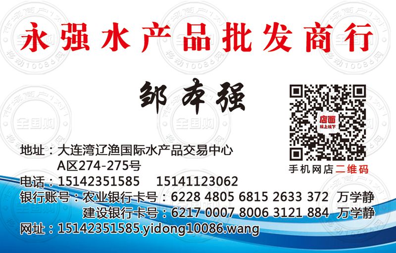 大连永强水产品批发商行名片-15141123062