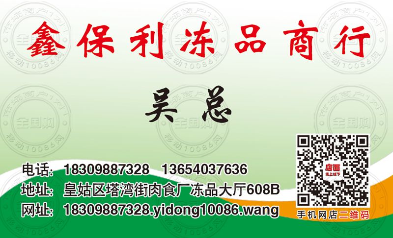 沈阳鑫保利冻品商行名片-13654037636