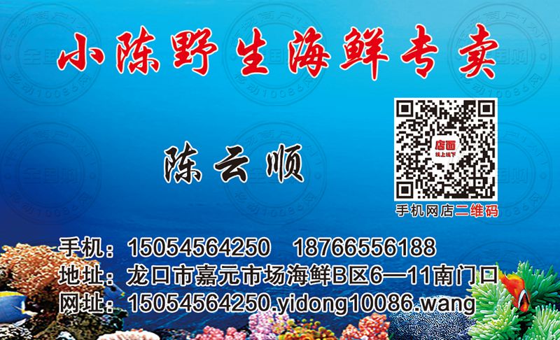 烟台小陈野生海鲜专卖名片-18766556188