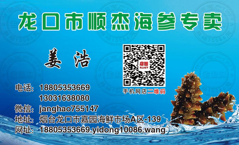 龙口市顺杰海参专卖名片-13031638080