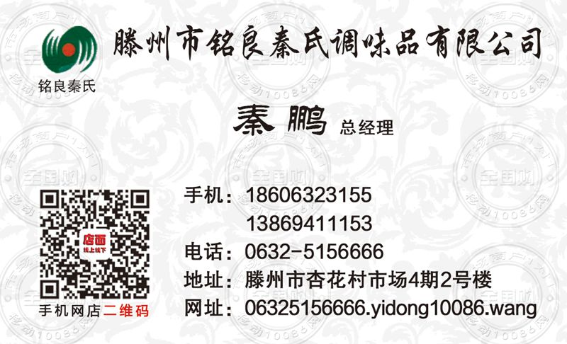 滕州市铭良秦氏调味品有限公司名片-18606323155