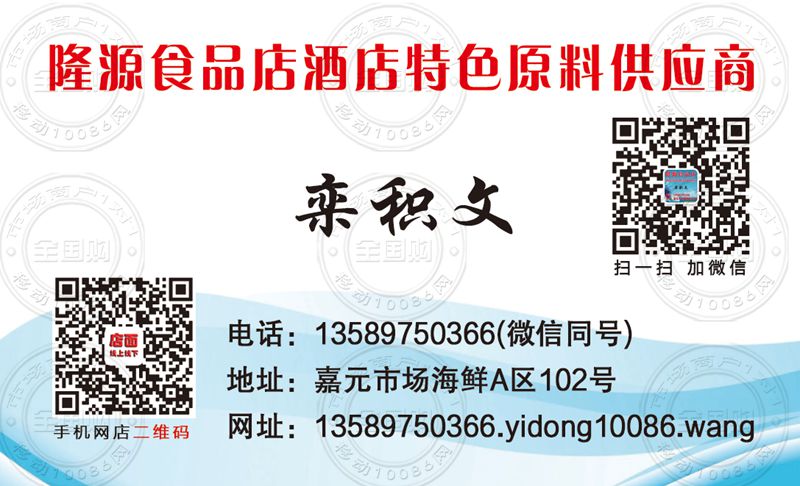 隆源食品店酒店特色原料供应商名片-13589750366