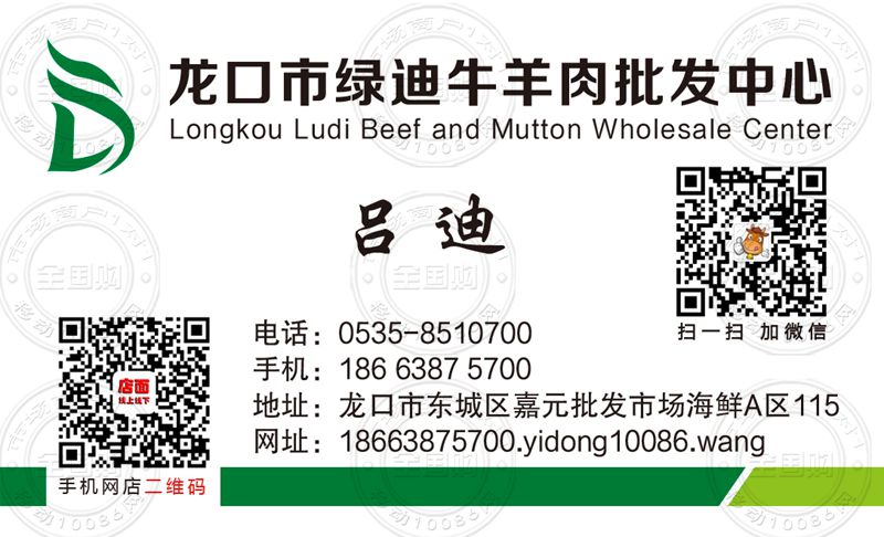 龙口市绿迪牛羊肉批发中心名片-18663875700
