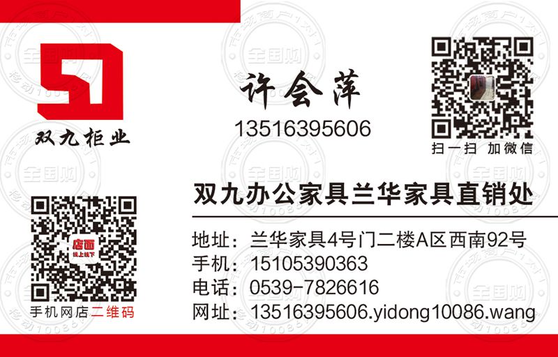双九办公家具兰华家具直销处名片-15105390363