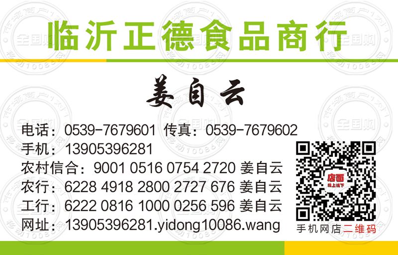 临沂市正德食品商行名片-13905396281