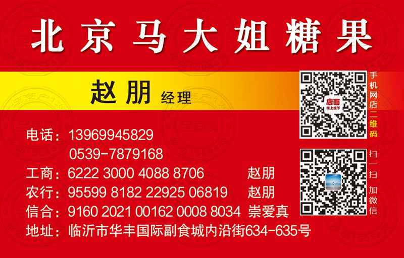 北京马大姐糖果临沂总代理名片-13969945829