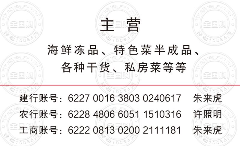 安徽阿虎海鲜冻品批发商行名片-13956957268