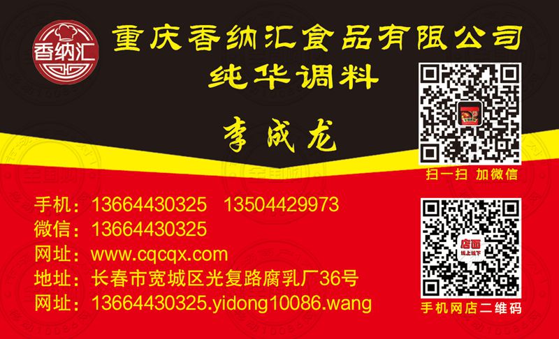 重庆香纳汇食品有限公司名片-13504429973