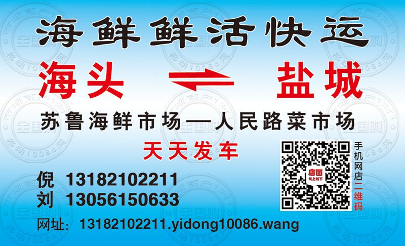 海鲜鲜活快运名片-13056150633