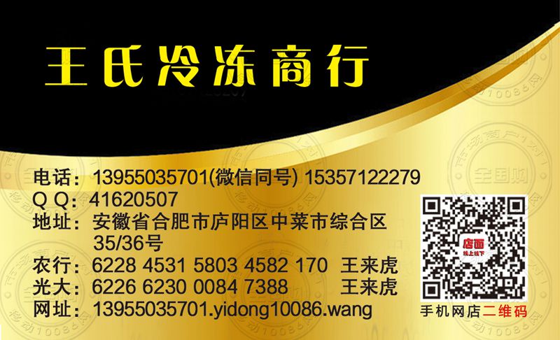 合肥王氏冷冻商行名片-13955035701