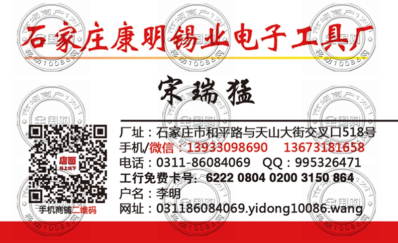 石家庄康明锡业电子工具厂名片-13933098690
