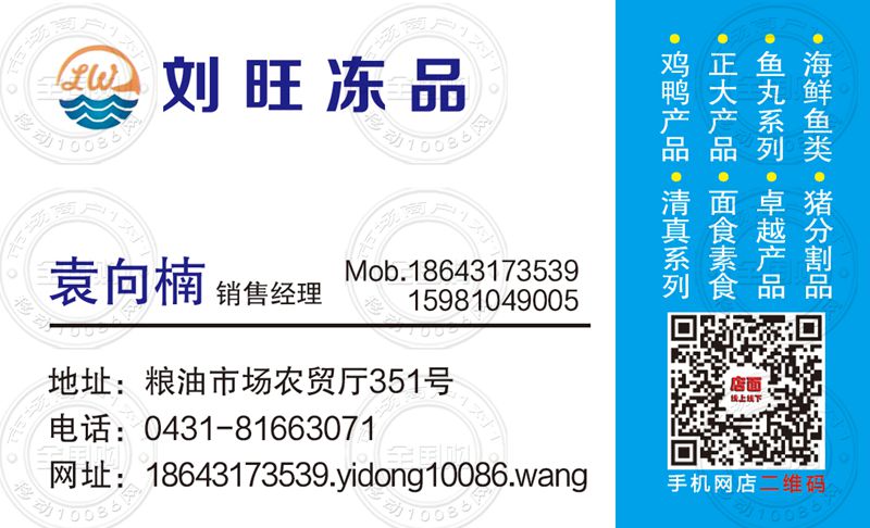 长春刘旺冻品名片-18643173539