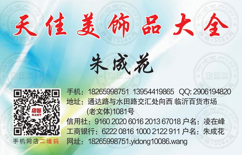 临沂天佳美饰品大全名片-13954419865