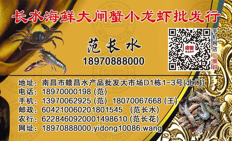 南昌长水海鲜大闸蟹小龙虾批发行名片-18970000198