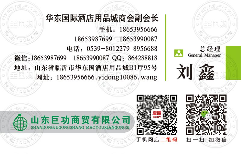 地址:山东省临沂市华东国酒店用品城B1厅95号
