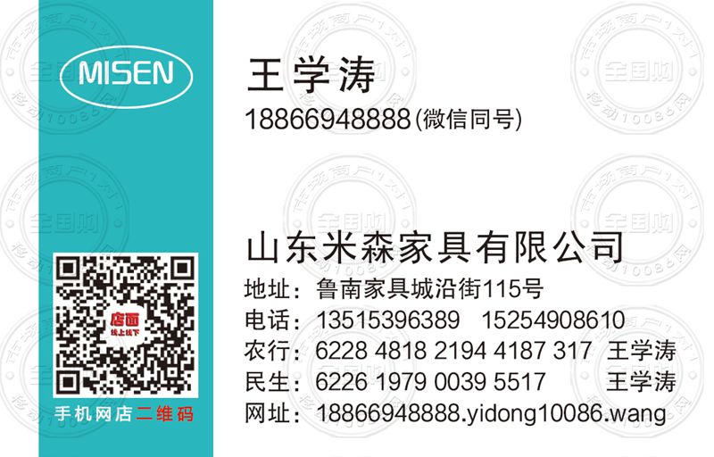 山东米森家具有限公司名片-13515396389